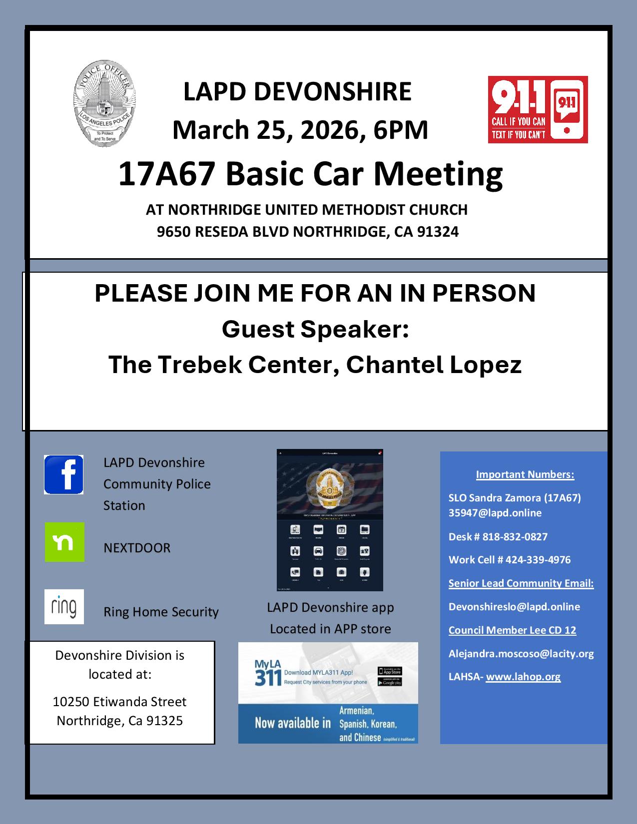 All work is advisory to the City and focused on improving quality of life in the Chatsworth area.
